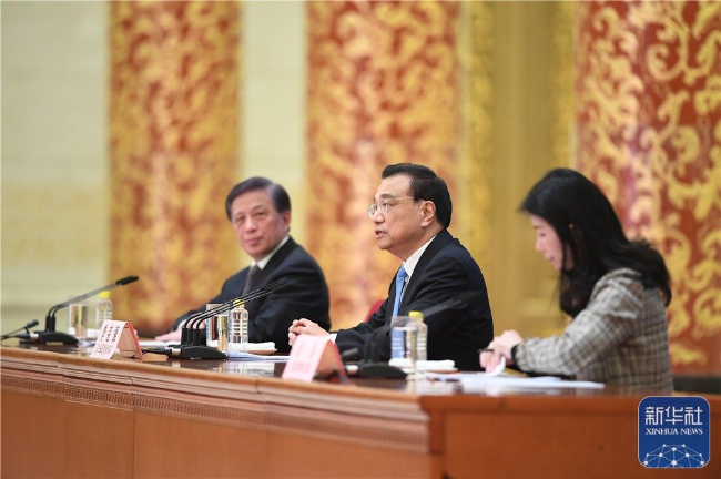 3月11日上午,十三届全国人大五次会议在北京人民大会堂举行记者会,国务院总理李克强应大会发言人张业遂的邀请出席记者会,并回答中外记者提问。新华社记者 李鑫 摄