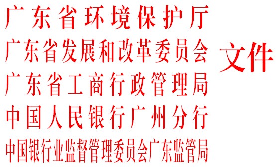 各地级以上市环保局、深圳市人居环境委、顺德区环境运输和城市管理局,各地级以上市发改局(委)、顺德区发展规划和统计局,各地级以上市工商行政管理局、深圳市市场监督管理局、佛山市顺德区市场安全监管局,人民银行广东省内各中心支行,各银监分局: