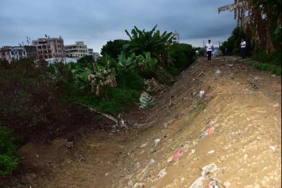 图6 为应付督察潮阳区官田水沿岸临时掩埋生活垃圾