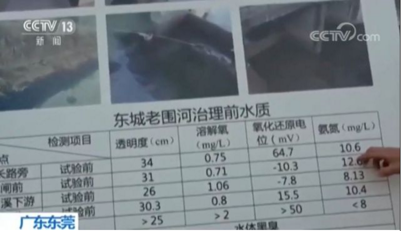 记者看到,除了向河道里添加药剂,治理公司还在河道里加装曝气设施不断曝气,希望用人工曝气,提升水中的溶解氧改善水质。据当地介绍,这种方法效果明显,仅仅一个月,就使老围河和人民涌等河道告别了黑臭的面貌。