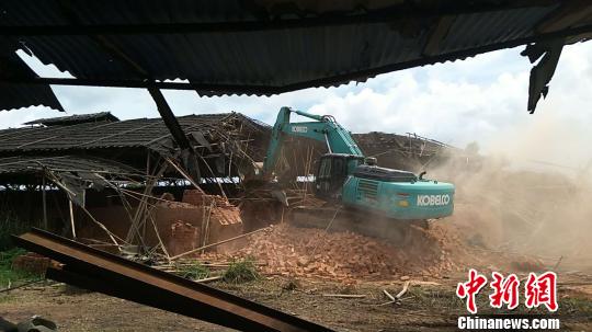图为当地执法人员对该冶炼厂进行依法拆除。警方供图
