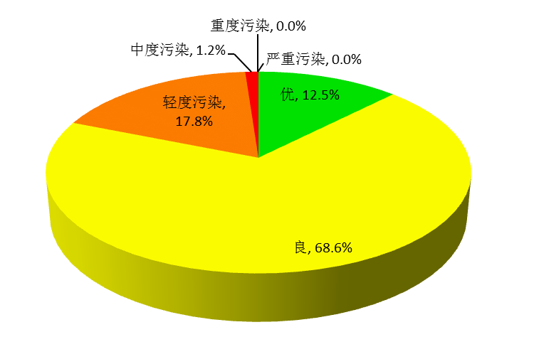 2014年第四季度全省各城市空气质量达标天数比例在59.8%-96.7%之间,达标天数比例平均为81.1%,其中,优占12.5%,良占68.6%;超标天数比例为18.9%,其中轻度污染占17.8%,中度污染占1.1%,无重度污染和严重污染。