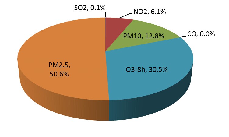 对于SO2NO2PM10PM2.5Ci为月度或季度平均浓度,Si为对应污染物的年均值二级标准;对于COCi为第95百分位数浓度值,SiCO的日均值二级标准;对于O3日最大8小时平均值,Ci为第90百分位数浓度值,Si为日最大8小时均值的二级标准。