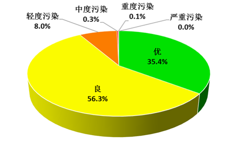 2016年第四季度全省各城市空气质量达标天数比例平均为91.7%,其中,优占35.4%,良占56.3%;超标天数比例为8.4%,其中轻度污染占8.0%,中度污染占0.3%,重度污染0.1%,无严重污染。