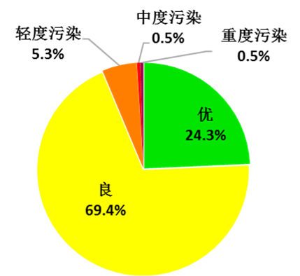 20182月全省各城市空气质量达标天数比例平均为93.7%,其中,优占24.3%,良占69.4%;超标天数比例为6.3%,其中轻度污染占5.3%,中度污染占0.5%,重度污染占0.5%,无严重污染。珠三角地区空气质量达标天数比例平均为94.5%