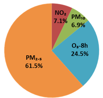 对于SO2NO2PM10PM2.5Ci为月度或季度平均浓度,Si为对应污染物的年均值二级标准;对于COCi为第95百分位数浓度值,SiCO的日均值二级标准;对于O3日最大8小时平均值,Ci为第90百分位数浓度值,Si为日最大8小时均值的二级标准。