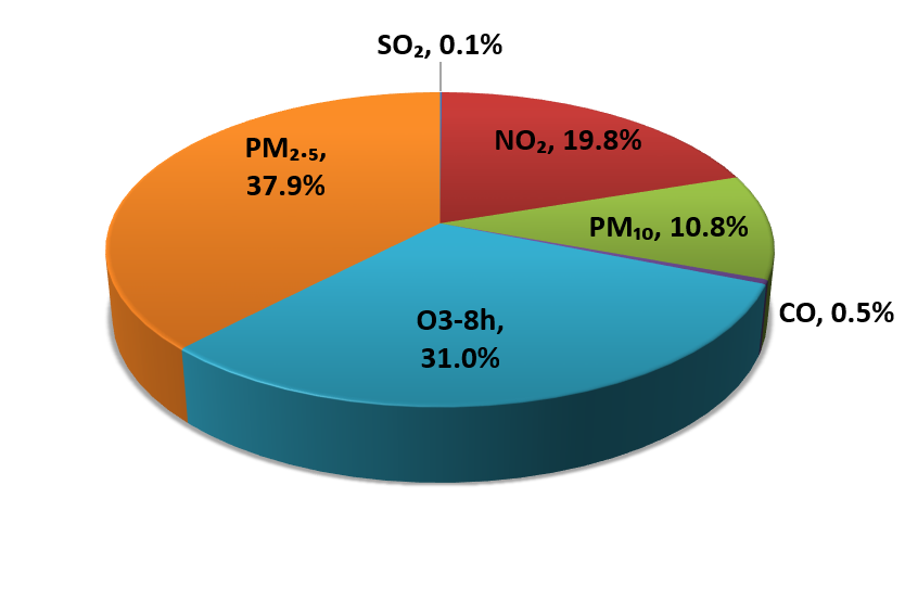 3、环境空气综合质量指数是描述城市环境空气质量综合状况的无量纲指数,它综合考虑了SO2、NO2、PM10、PM2.5、CO、O3 等六项污染物的污染情况,环境空气综合质量指数越大表明综合污染程度越重。城市月度和季度评价的环境空气综合质量指数计算方法如下: