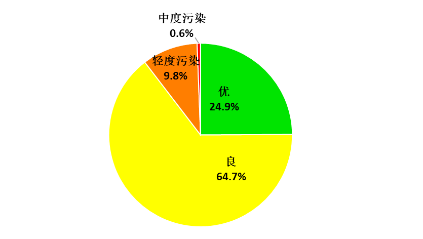2018年3月全省各城市空气质量达标天数比例平均为89.6%,其中,优占24.9%,良占64.7%;超标天数比例为10.4%,其中轻度污染占9.8%,中度污染占0.6%,无重度和严重污染。珠三角地区空气质量达标天数比例平均为89.2%。