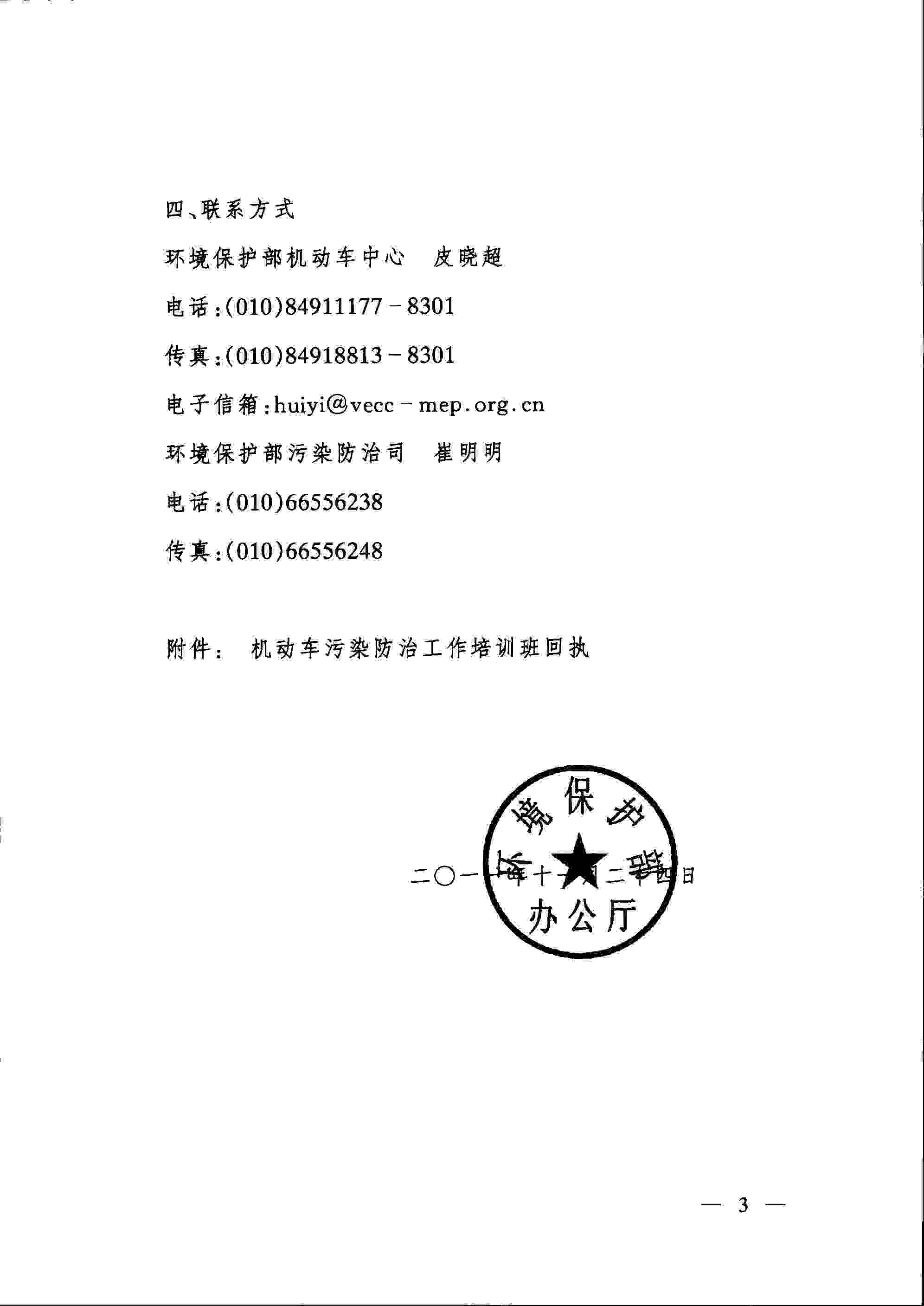 现将环境保护部办公厅《关于举办2011年度全国机动车污染防治工作培训班的通知》(环办函〔2011〕1381号)转发给你们,请按要求报名参加。