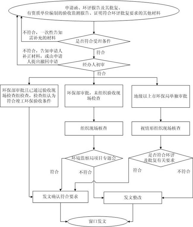 (一)属于环境保护部审批环境影响评价文件的燃煤发电机组项目(含脱硝脱硫设施),环境保护部或环境保护部华南环境保护督查中心已组织项目竣工环保验收现场检查且检查组认为项目基本符合竣工环境保护验收条件的,环境监察局经办人起草核查意见,经厅总量处会签、报厅领导签发后印发公文,函告建设单位我厅同意验收检查组意见,并确认项目脱硝脱硫设施符合环保验收条件。