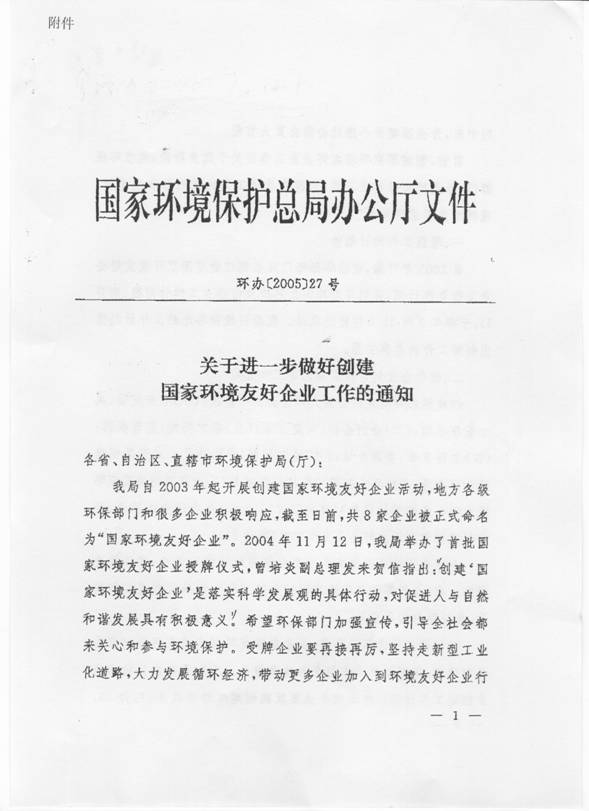 附件:关于进一步做好创建国家环境友好企业工作的通知(环办〔2005〕27号)